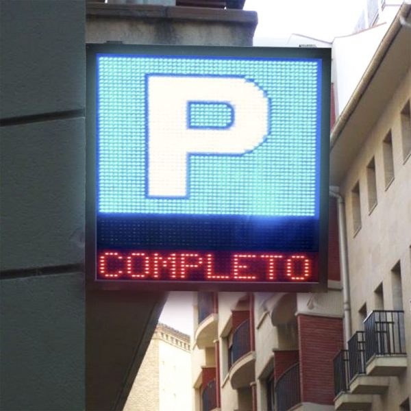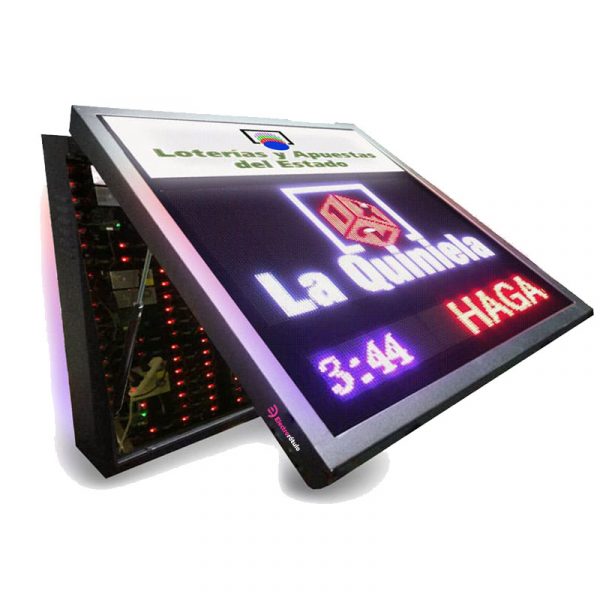 Banderola Led de exterior, Pixel 8. Todo color, alto brillo y bajo consumo, integrada en un sólido chasis de metal. Dos pantallas con acceso delantero.