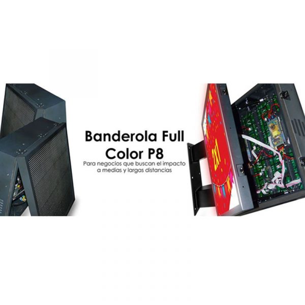 Todas las banderolas led P8 de Electrorotulo, cuentan con 2 años de garantía en todos los componentes. *Excepto en instalaciones cercanas al mar, que no cubre el deterioro generado por las condiciones de la zona (salitre, humedad, etc.)