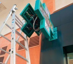 Las cruces de farmacia cuentan con una tecnología modular que anula la separación entre placas, consiguiendo una pantalla en forma de cruz compacta y de gran resolución proporcionado a su tamaño reducido.