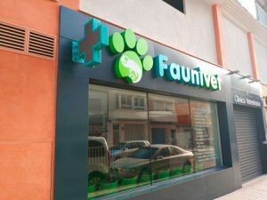 Rótulo electrónico led para farmacias, veterinarios, clínicas, etc. exterior a doble cara. Con apertura hacia arriba.