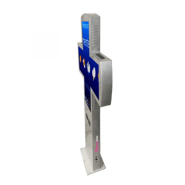 Esta cruz de farmacia ha sido creada con un diseño innovador y un peso reducido. Sus bordes redondeados le aportan un diseño sublime, manteniendo la tecnología modular.