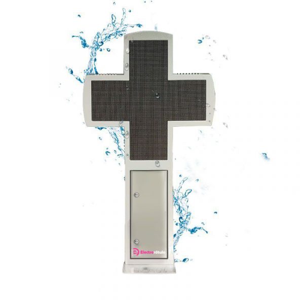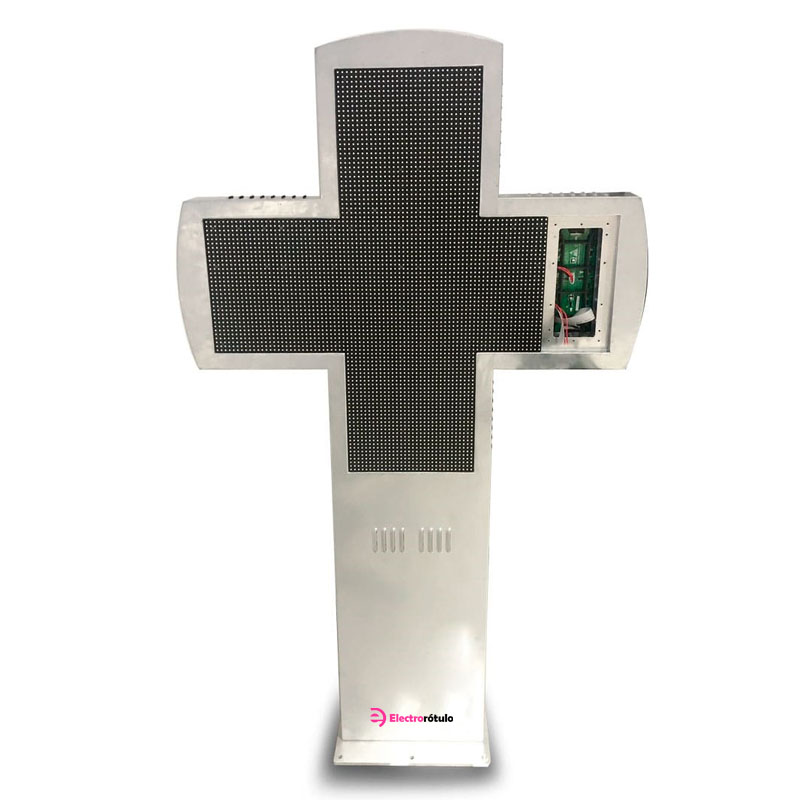 Un tamaño reducido y un gran diseño la convierten en el elemento perfecto: esta cruz a todo color, ha sido creada con la finalidad de emitir contenido cambiante, videos, imágenes, textos, reloj, o información de temperatura, además de poder configurar a través del software contenidos exclusivos para determinados días.